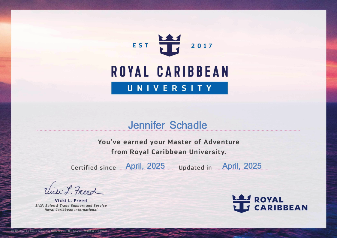 Today, I specialize in cruises across multiple lines, matching the right ship, itinerary, and vibe to each client. I believe travel planning should feel exciting, not overwhelming. Clear communication. Honest advice. The best value for you, not the highest commission for me.